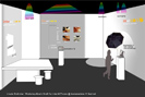Depending on the scope and scale of the installation, there can be a third area, the "rehearsal area" where performers/dancers or the audience can rehearse and enact their "physical" interpretation of social media terminology.